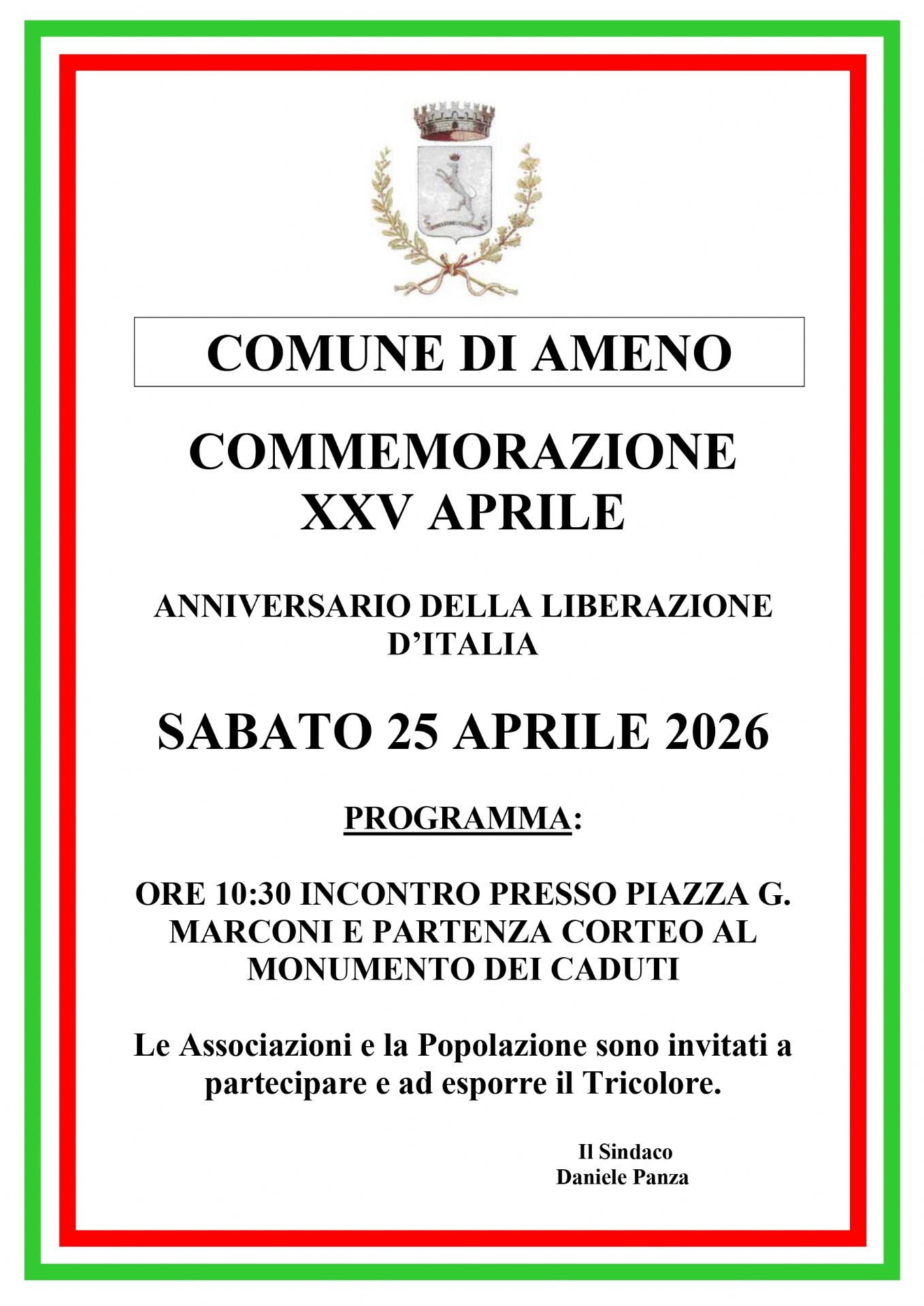 Le Associazioni e la Popolazione sono invitati a partecipare e ad esporre il Tricolore.